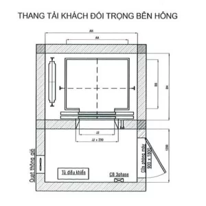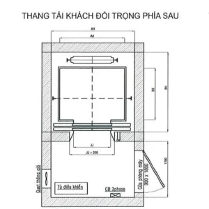 - Hoặc là tỉ lệ giữa chiều sâu và chiều ngang không hợp lý.chiều sâu nông , chiều ngang rộng hơn nhiều thì nên lắp đối trọng phía hông giếng thang sẽ phù hợp hơn. kích thước cabin cân đối hơn